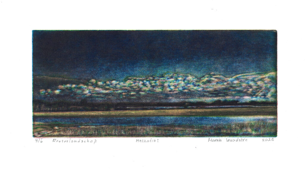 Mezzotint Mezzotint rivierlandschap (2025) Afdruk 10/23Op Hahnemühle drukpapier, ingelijst (21/40 cm)Prijs: €120,- (exclusief verzendkosten) Klik op de afbeelding voor een grotere weergave van de mezzotint rivierlandschap (2025) Afdruk 10/23Op Hahnemühle drukpapier (16/29 cm)Prijs: €80,- (exclusief verzendkosten) Klik op de afbeelding voor een grotere weergave van de mezzotint de zonnebloem (2025) Afdruk 15/15Op Hahnemühle drukpapier, ingelijst (27/27 cm)Prijs: €120,- (exclusief verzendkosten) Klik op de afbeelding voor een grotere weergave van de mezzotint de zonnebloem (2025) Afdruk 15/15Op Hahnemühle drukpapier (17/19 cm)Prijs: €65,- (exclusief verzendkosten) Klik op de afbeelding voor een grotere weergave van de mezzotint molen de hoop (2025) Afdruk 10/15 Op Hahnemühle drukpapier, ingelijst (22/30 cm)Prijs: €95,- (exclusief verzendkosten) Klik op de afbeelding voor een grotere weergave van de mezzotint molen de hoop (2025) Afdruk 10/15Op Hahnemühle drukpapier (17/22 cm)Prijs: €50,- (exclusief verzendkosten) Klik op de afbeelding voor een grotere weergave van de mezzotint dalempoort en molen de hoop (2024) Afdruk 7/11 (2x)Op Hahnemühle drukpapier (20/27 cm)Prijs: €50,- (exclusief verzendkosten) Klik op de afbeelding voor een grotere weergave van de mezzotint toren grote kerk (2024) Afdruk 12/24Op Hahnemühle drukpapier, ingelijst (24/30 cm)Prijs: €170,- (exclusief verzendkosten) Klik op de afbeelding voor een grotere weergave van de mezzotint toren grote kerk (2024) Afdruk 12/24 Op Hahnemühle drukpapier (28/29 cm) Prijs: €120,- (exclusief verzendkosten) Klik op de afbeelding voor een grotere weergave van de mezzotint de steen (2024) Afdruk 13/20Op Hahnemühle drukpapier, ingelijst (28/35 cm)Prijs: €120,- (exclusief verzendkosten) Klik op de afbeelding voor een grotere weergave van de mezzotint De steen (2024) Afdruk 13/20 Op Hahnemühle drukpapier (23/25 cm) Prijs: €65,- (exclusief verzendkosten) Klik op de afbeelding voor een grotere weergave van de mezzotint Gezicht op slot loevestein (2023) Afdruk 15/24 cm Op Hahnemühle drukpapier (26/26 cm)Prijs: €120,- (exclusief verzendkosten) Klik op de afbeelding voor een grotere weergave van de mezzotint Dijkhuisje (2023) Afdruk 10/30 cm Op Hahnemühle drukpapier (14/38 cm)Prijs: €105,- (exclusief verzendkosten) Klik op de afbeelding voor een grotere weergave van de mezzotint Wester-scheldedijk (2023) Afdruk 10/30 cm Op Hahnemühle drukpapier (14/39 cm)Prijs: €105,- (exclusief verzendkosten) Klik op de afbeelding voor een grotere weergave van de mezzotint Dijkovergang Westerschelde (2022) Afdruk 10/15 cm Op Hahnemühle drukpapier (26/31 cm)Prijs: €100,- (exclusief verzendkosten) Klik op de afbeelding voor een grotere weergave van de mezzotint Naamloos (2022) Afdruk 10/15 cm Op Hahnemühle drukpapier (23/29 cm)Prijs: €80,- (exclusief verzendkosten) Klik op de afbeelding voor een grotere weergave van de mezzotint erbarme Dich (2022) Afdruk 15/15 cm Op Hahnemühle drukpapier (26/26 cm)Prijs: €100,- (exclusief verzendkosten) Klik op de afbeelding voor een grotere weergave van de mezzotint De Dames (2022) Afdruk 10/25 cm Op Hahnemühle drukpapier (24/37 cm)Prijs: €110,- (exclusief verzendkosten) Klik op de afbeelding voor een grotere weergave van de mezzotint etty hillesum (2021) Afdruk 10/15 cm Op Hahnemühle drukpapier (24/28 cm)Prijs: €100,- (exclusief verzendkosten) Klik op de afbeelding voor een grotere weergave van de mezzotint holocaust-monument Berlijn (2021) Afdruk 10/15 cm Op Hahnemühle drukpapier (23/29 cm)Prijs: €80,- (exclusief verzendkosten) Klik op de afbeelding voor een grotere weergave van de mezzotint lichtbaken (2020) Afdruk 12/18 cm Op Hahnemühle drukpapier (24/33 cm)Prijs: €110,- (exclusief verzendkosten) Klik op de afbeelding voor een grotere weergave van de mezzotint
